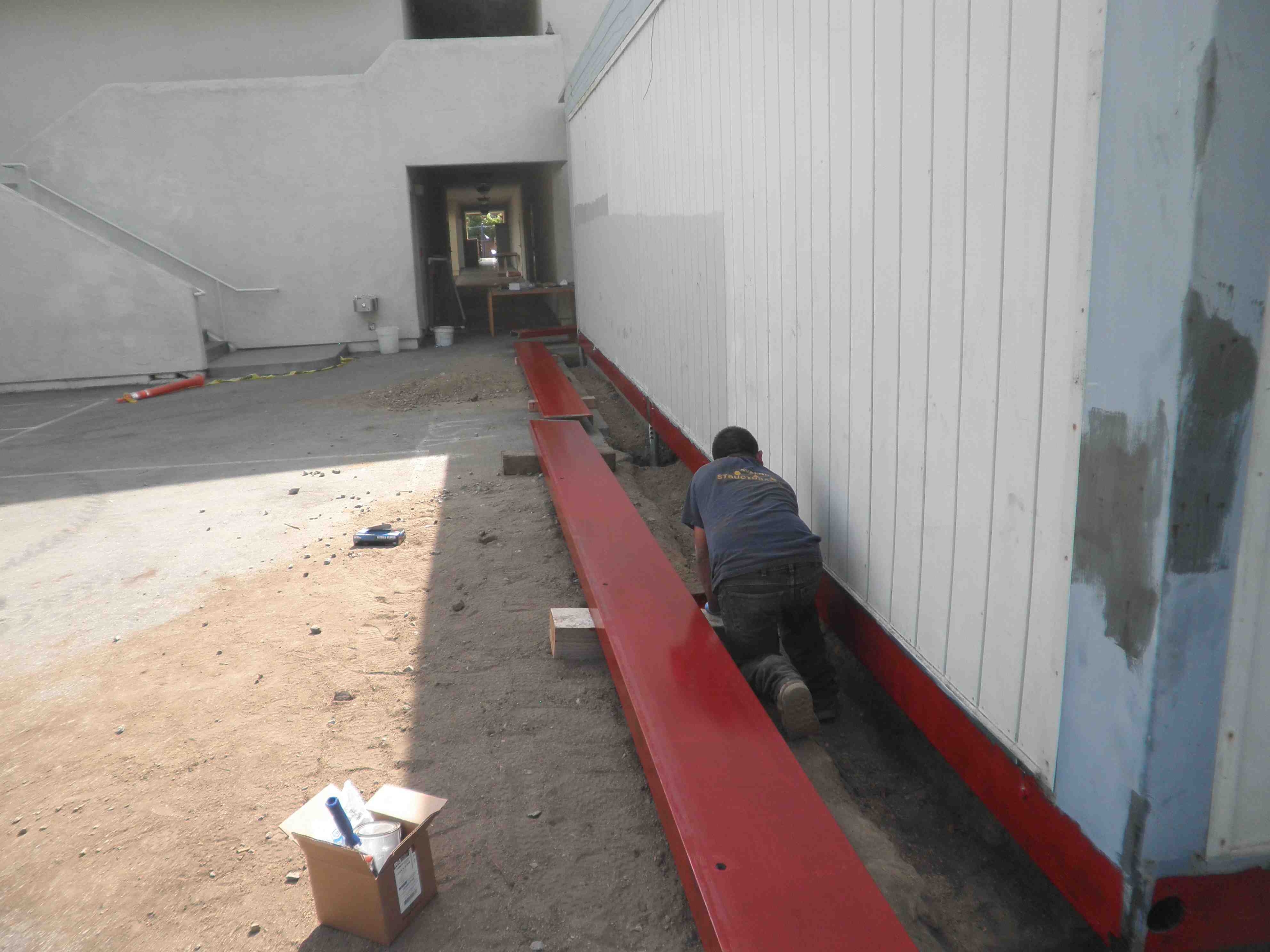 | The portable unit was later welded to the helical piers for seismic anchorage. Additionally, C-channels were added to strengthen the frame of the portable.