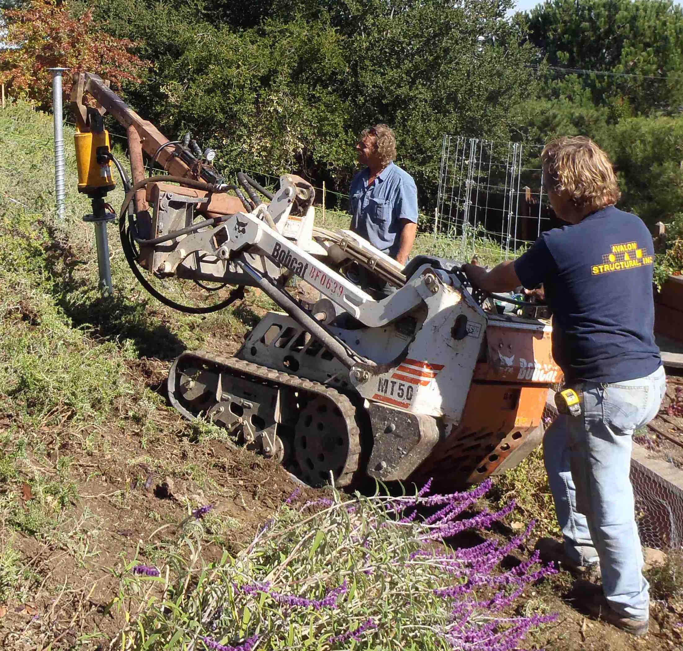 | Helical piles are the perfect foundation for portable or temporary buildings as they provide a far superior anchorage to the ground than the spikes normally used, and because they can be removed when the building is moved. In the picture below, Avalon has installed a portable classroom to accommodate expansion of the Aptos Academy, a private school.